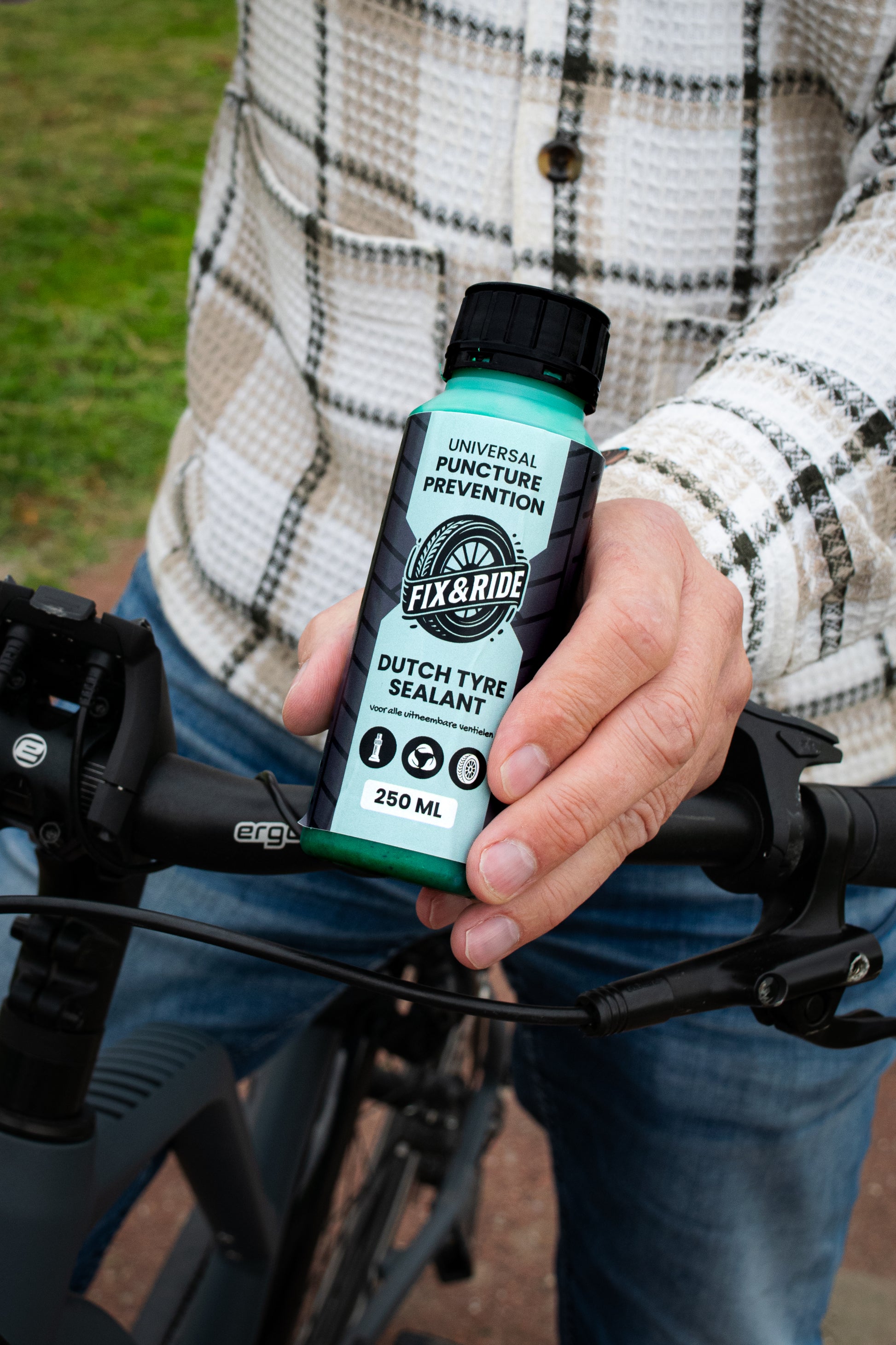 Of je nu een stadsfiets, e-bike of sportfiets hebt – Fix&Ride werkt met zowel binnenbanden, buitenbanden als tubeless banden. Geproduceerd in Nederland, biologisch afbreekbaar en verpakt in gerecycled materiaal – zo draag je ook nog eens bij aan een beter milieu.